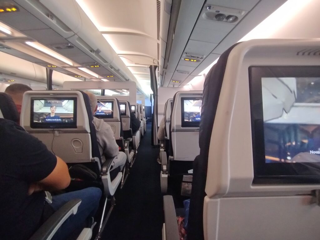 Air France are still running pretty old Airbus A330 planes on this daily direct flight to St Martin. The good thing about this plane was the option to reserve a ‘duo’ seat.