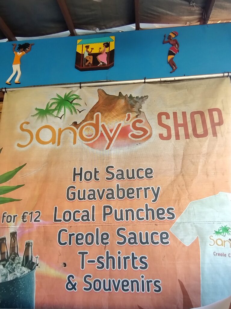 After having a wander around, we chose to eat at Sandy’s Lolo. We ordered a couple of burgers, a cold bottle of Carib (the local beer) and a coke.