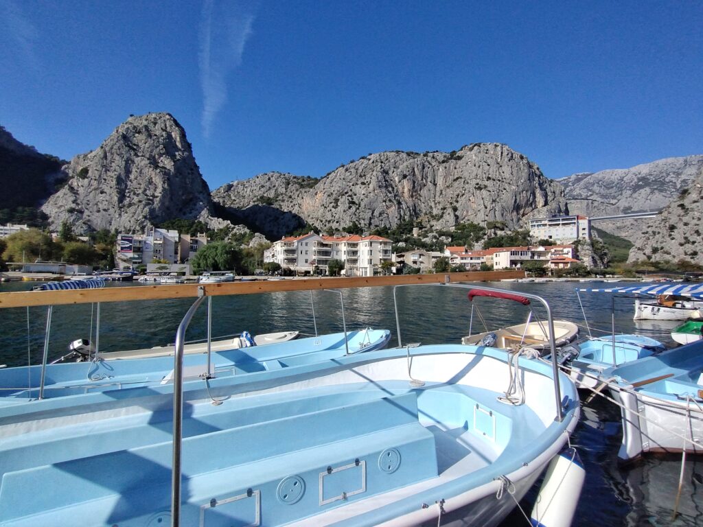 Feeling the need for a bit of exploration, we headed toward Omiš, the charming town where jagged mountains fill the landscape. Even before we’d fully escaped the car, we were gobsmacked: cliffs towering behind terracotta rooftops, and the river snaking to the sea — basically nature showing off, and we loved it.
