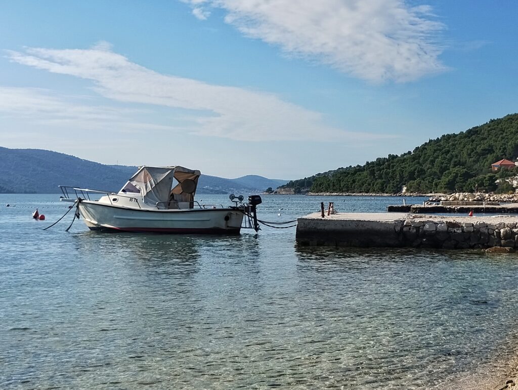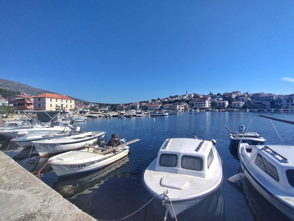 Determined to track down our very own slice of paradise, we headed west and stumbled upon Seget Vranjica — a charming little fishing village just 10 minutes from Trogir. It was like stepping into a postcard: tiny cobbled streets, colourful boats bobbing in the calm water, and crystal clear sea. Not another tourist in sight — just us, the sea, and the occasional curious seagull.