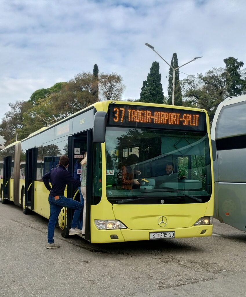 Once we’d dropped the car off, we only had to leave the car park and cross the road to wait for bus number 37 to take us quickly back to Trogir. This same bus also goes to Split in the other direction. It cost us €2.50 each from the airport to Trogir…. bargain!