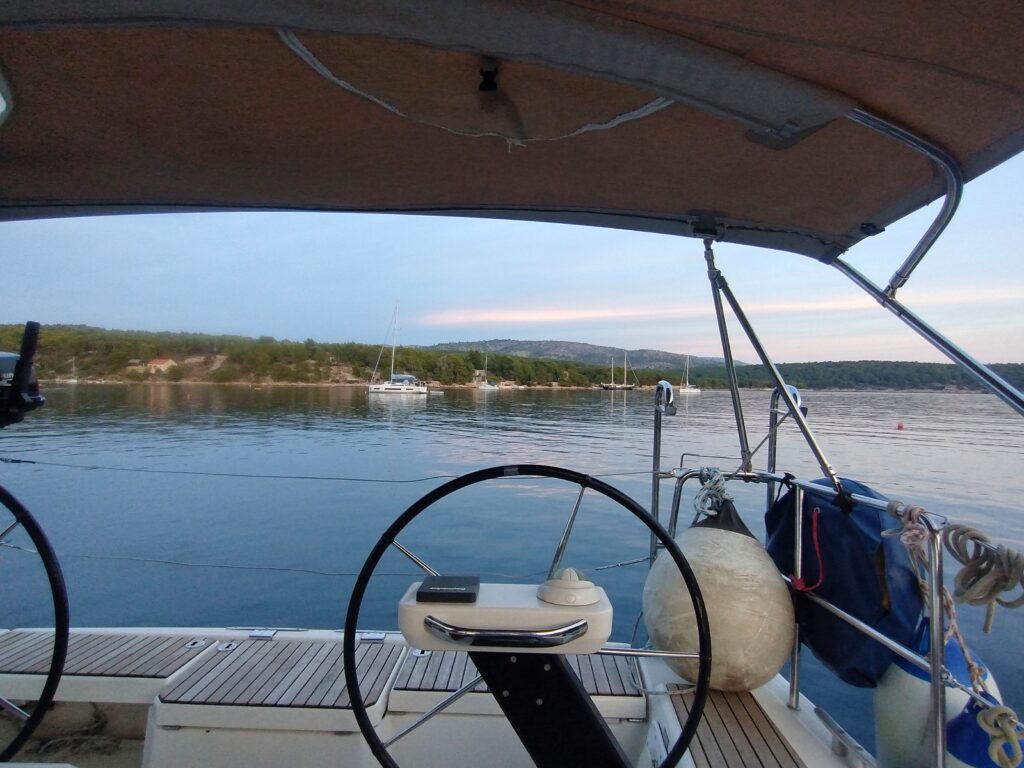 Now we always appreciate help, but it always comes at a cost in Croatia! Mr nice helpful guy was asking for €50 to use the buoy! Now knowing the restaurant was closed and the owners telling us we could use the buoys, we weren’t having any of that. After explaining we’d contacted the restaurant, we offered him €20 for ‘helping’. Although not happy, he accepted and took off to wait for his next victim.