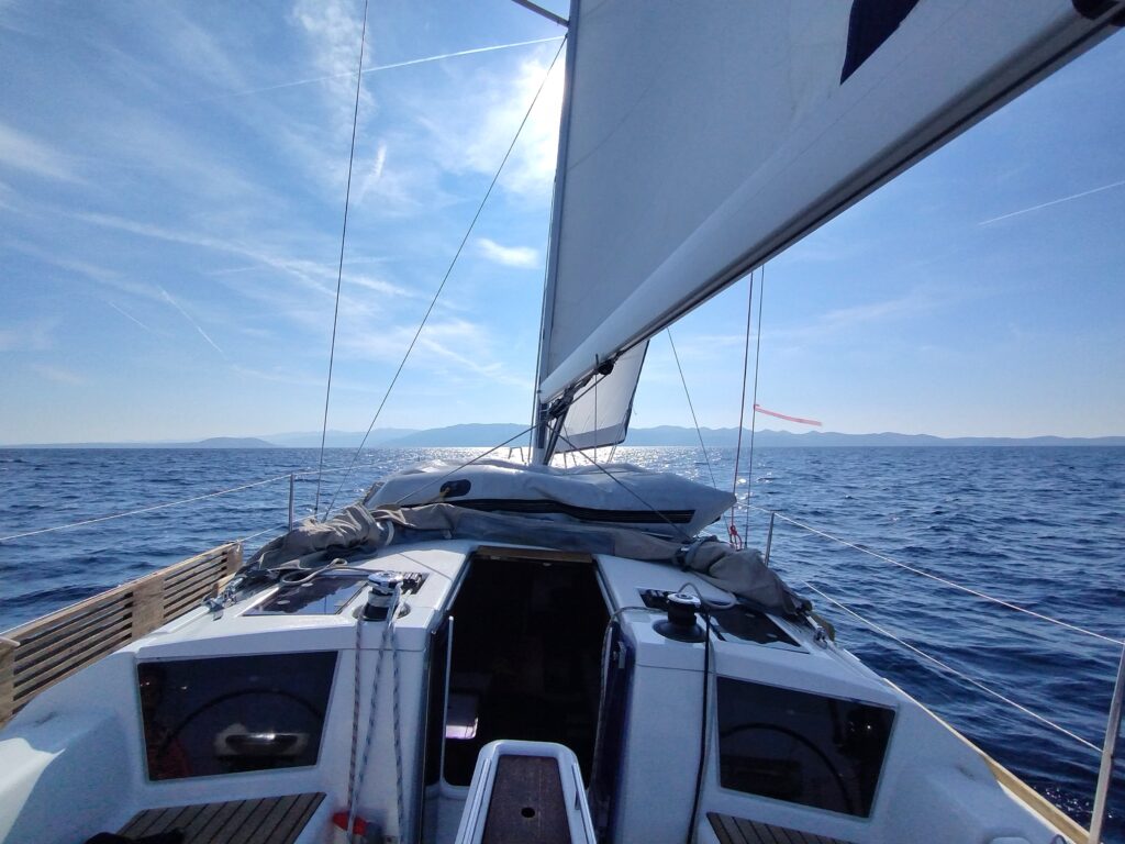 After a fantastic day sailing and ‘racing’ another boat on the way, we were heading into the channel to Bobovisca.