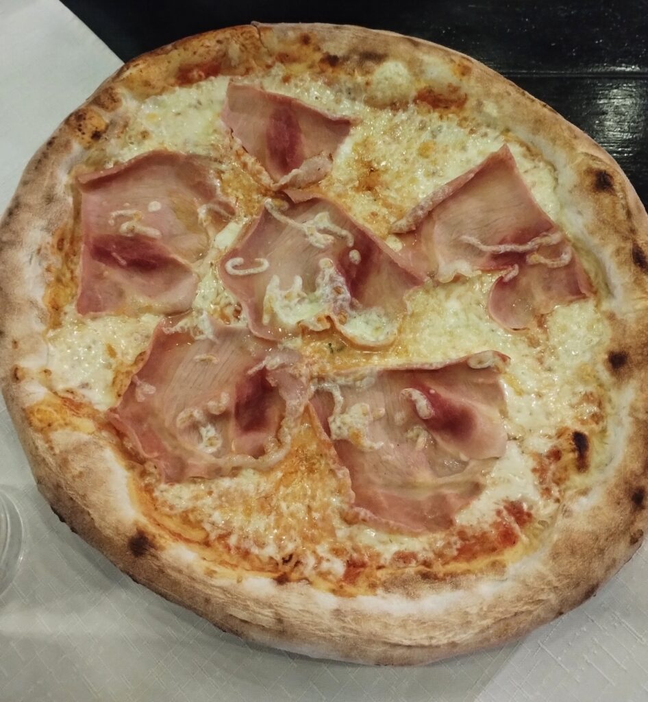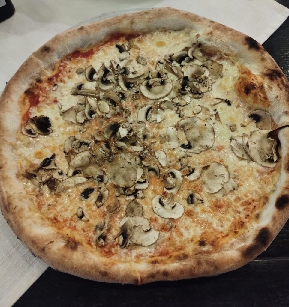 Our pizza arrived and was very lovely. As usual we only ate half. The rest would make a great lunch on our way the next day.